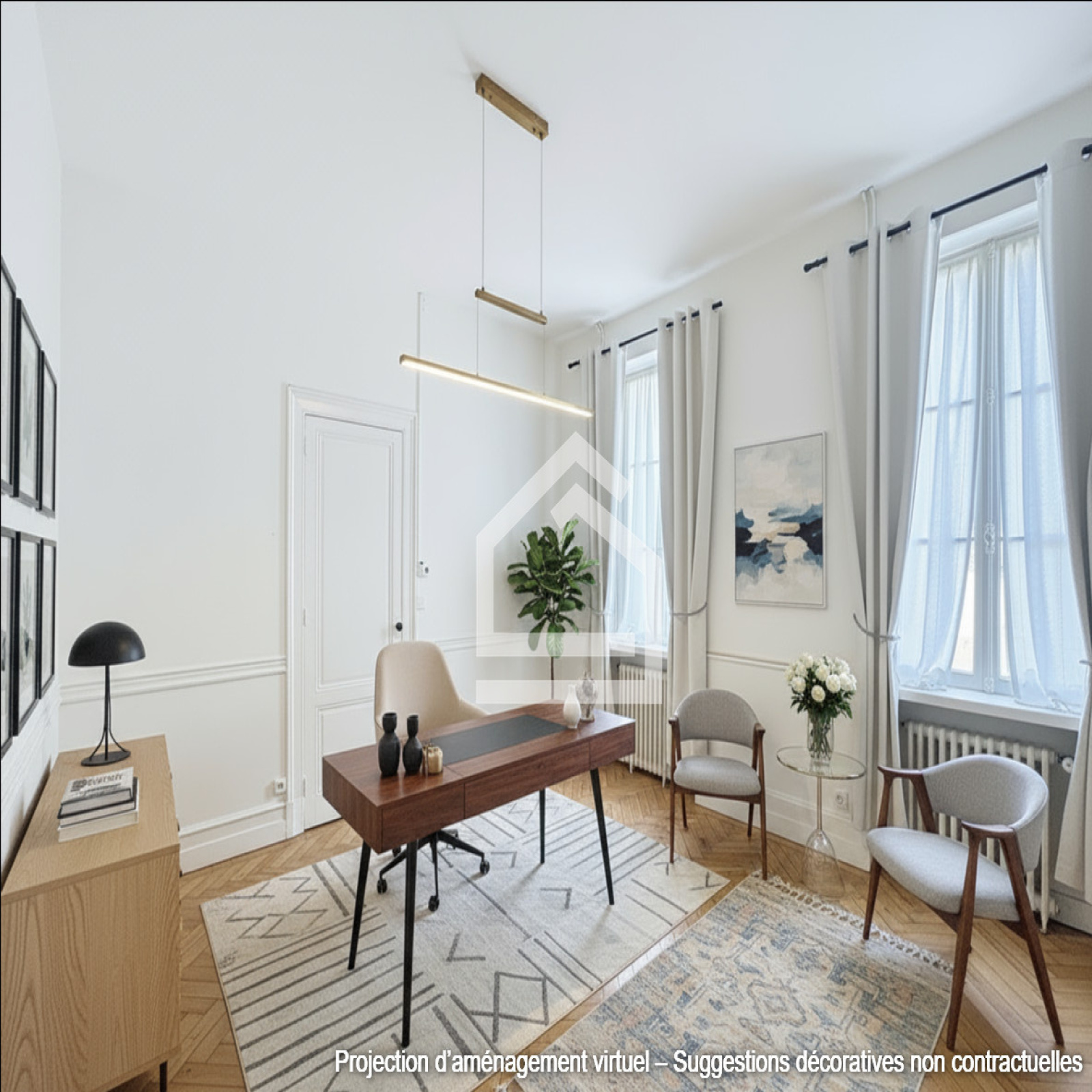 Un espace de vie raffiné et fonctionnel Dès l'entrée, la hauteur sous plafond et les prestations anciennes préservées séduisent instantanément.