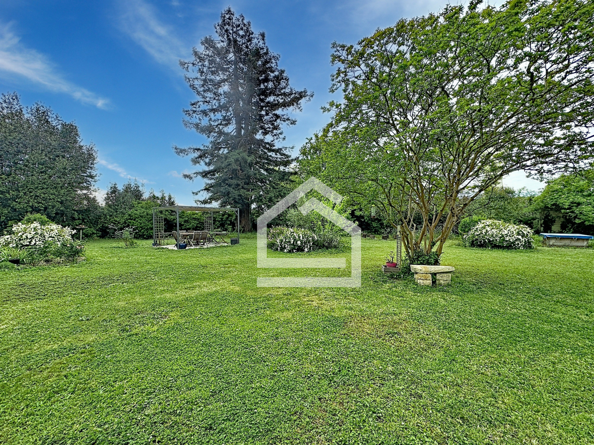 La maison principale se compose d'un vaste hall desservant un double salon-séjour de plus de 45m² lumineux tourné vers le jardin, ainsi qu'une cuisine moderne entièrement équipée, prolongée par un grand cellier/buanderie.